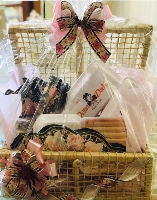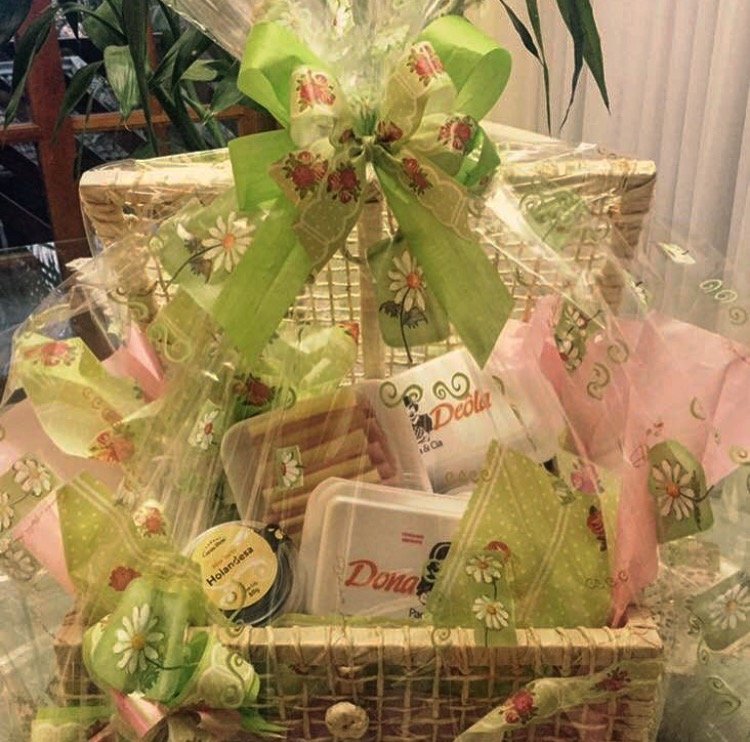 Composição: Suco de Frutas , Achocolatado, Vitamina de Frutas ou Iogurte, Água de Coco, Torradas Bauducco, Amanteigados Bauducco, Waffer Bauducco, Mini Bolo Recheado Bauducco, Cookies Nestlé, Amanteigados Caseiros, Sucrilhos ou Nescau Cereal, Barra de Cereais, 02 Croissant Recheados, 01 Pão Doce Recheado, 02 Frutas (da época), 02 tipos de Frios (Queijo-Presunto) 01 Delicioso Bolinho de Pote Gelado, 02 Trufas Recheada e 01 Pão de Mel Artesanal. Saches: Creme Choc. c/ avelã, Geléias, Manteiga, Polenguinho, Café, Chá, Capuccino, Açúcar, Adoçante e Mentinha de chocolate. Acompanha: 01 Caneca, Mini arranjo de Flores e cartão para mensagem.